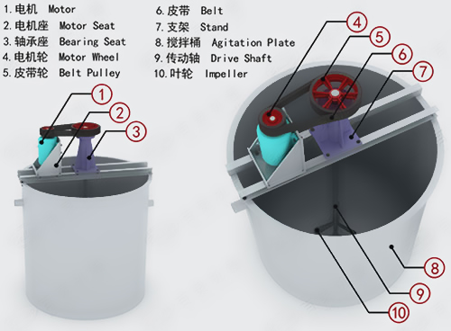 1、叶轮直径大、转速快,矿浆和药物搅拌能力强。